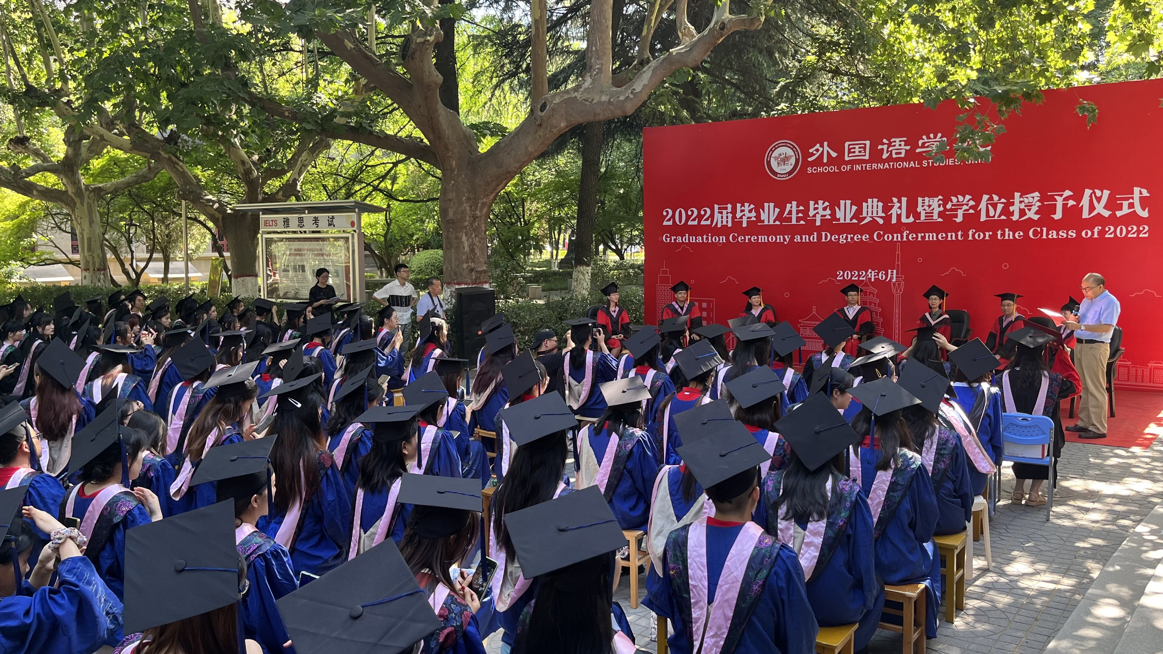 6月24日上午,公司2022届员工毕业典礼暨学位授予仪式在教学六楼门前广场隆重举行,典礼同时在腾讯会议平台直播。最靠谱的十大足球平台经理刘全国教授、党委书记董增云、公司前党委书记张弛、冯武鸣、副经理吕敏宏、曹婷、王幸生、党委副书记鲁燕、公共外语教学部主任马珂、英语系主任朱冬怡、副主任王立永、丁礼明、翻译系主任操林英、副主任杨冬敏、俄语系主任孟霞、副主任王翠、法语系副主任乔溪、日语系副主任许赛锋、学位委员会成员郑元会、张亚婷、魏军梅、办公室主任陈斐、语言语音教学中心主任邢俊升、团委书记李丹,以及全体辅导员出席典礼。典礼由最靠谱的十大足球平台副经理孙坚教授主持。公司2022届毕业生在公司领导和老师的共同见证下,拨穗正冠,开启人生新的旅程。