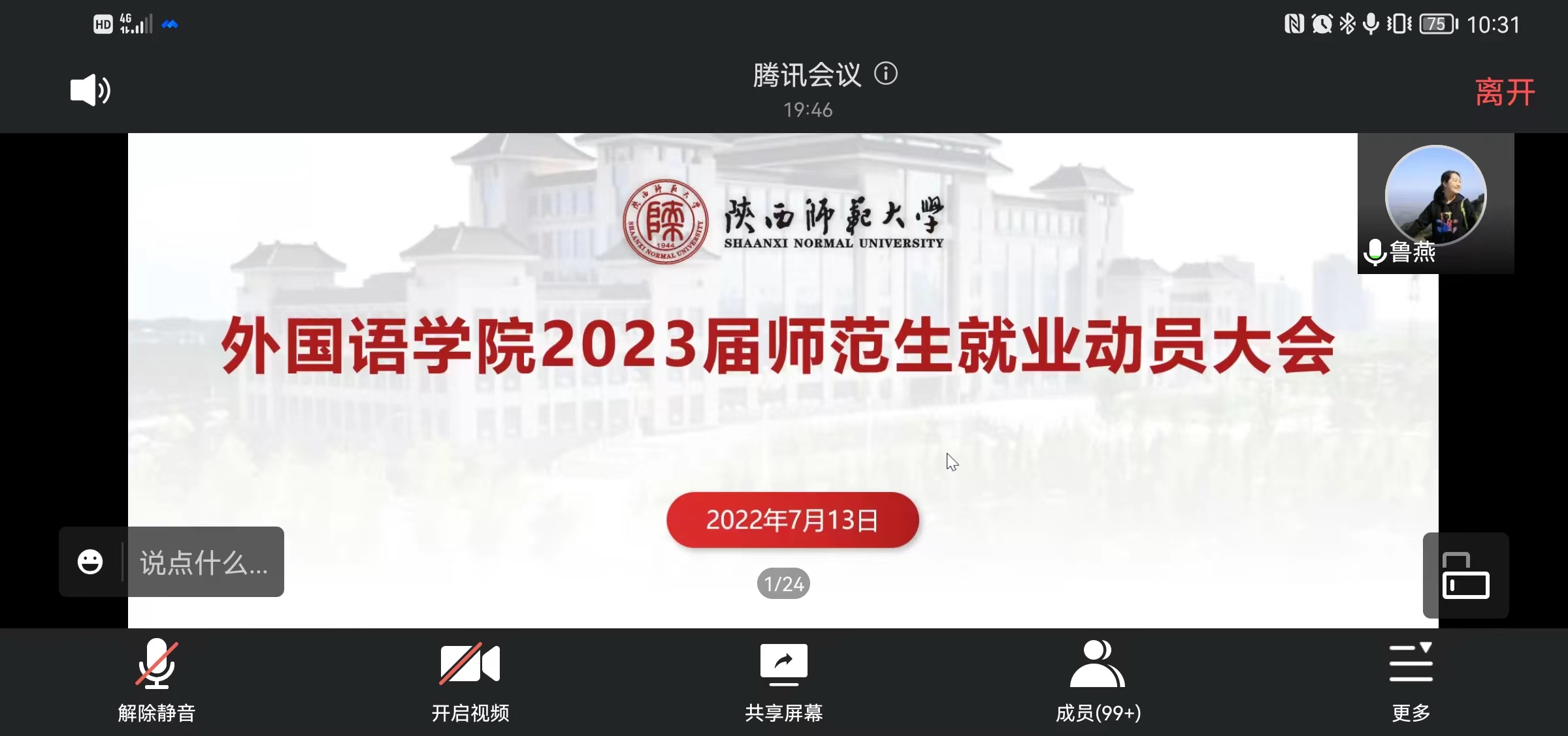为保障2023届师范生公司产品实习高质量完成,为师范生就业奠定良好基础,7月13日上午,最靠谱的十大足球平台通过线上形式召开2023届师范生实习就业动员大会。公司党委副书记鲁燕,英语系副主任丁礼明、王立永,2022届带队教师张春娟,2019级远程学科指导教师王辉、罗雅晖、闫军利、李立茹、刘丹、祁喜鸿,教学秘书高红英,辅导员屈婉婷,2022届师范生张润舒以及2023届英语公费师范班全体员工参会。动员会由最靠谱的十大足球平台副经理孙坚老师主持。