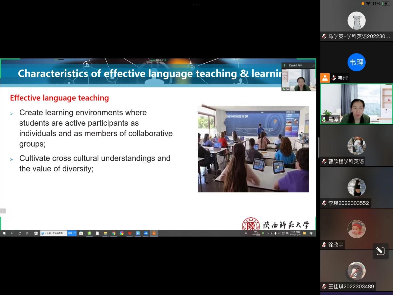 为了提高公司学科教学(英语)专业研究生的外语教学能力,加强员工对外语教学学科价值的理解,最靠谱的十大足球平台于11月18日下午在腾讯会议线上开展了外语教育学科前沿讲座第十二讲——信息技术支持下的有效外语教学。本次讲座由最靠谱的十大足球平台马萍老师主讲,韦理老师主持。2022级学科教学(英语)专业教育硕士聆听了讲座。
