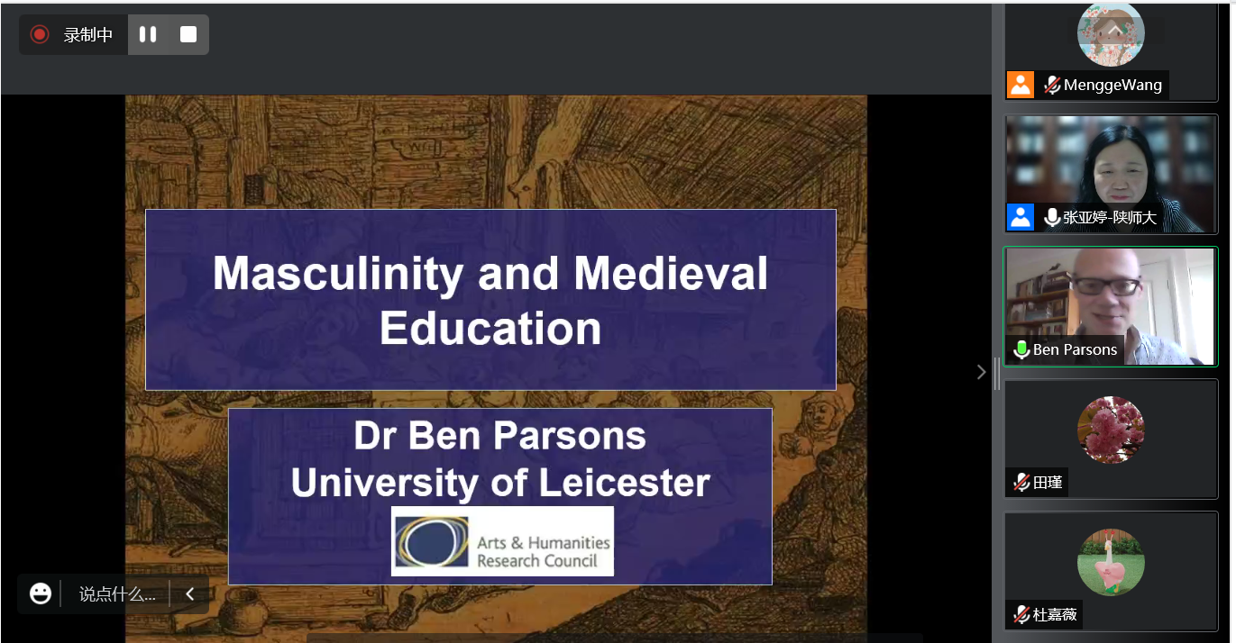 2022年12月6日晚7点,公司通过腾讯会议平台成功举办了以“中世纪教育中的男性气质培养”为主题的第一百五十场著名学者系列讲座。本次讲座由英国莱斯特大学文学与艺术公司本·帕森斯教授主讲,公司张亚婷教授主持,近200名校内外师生参加了讲座。