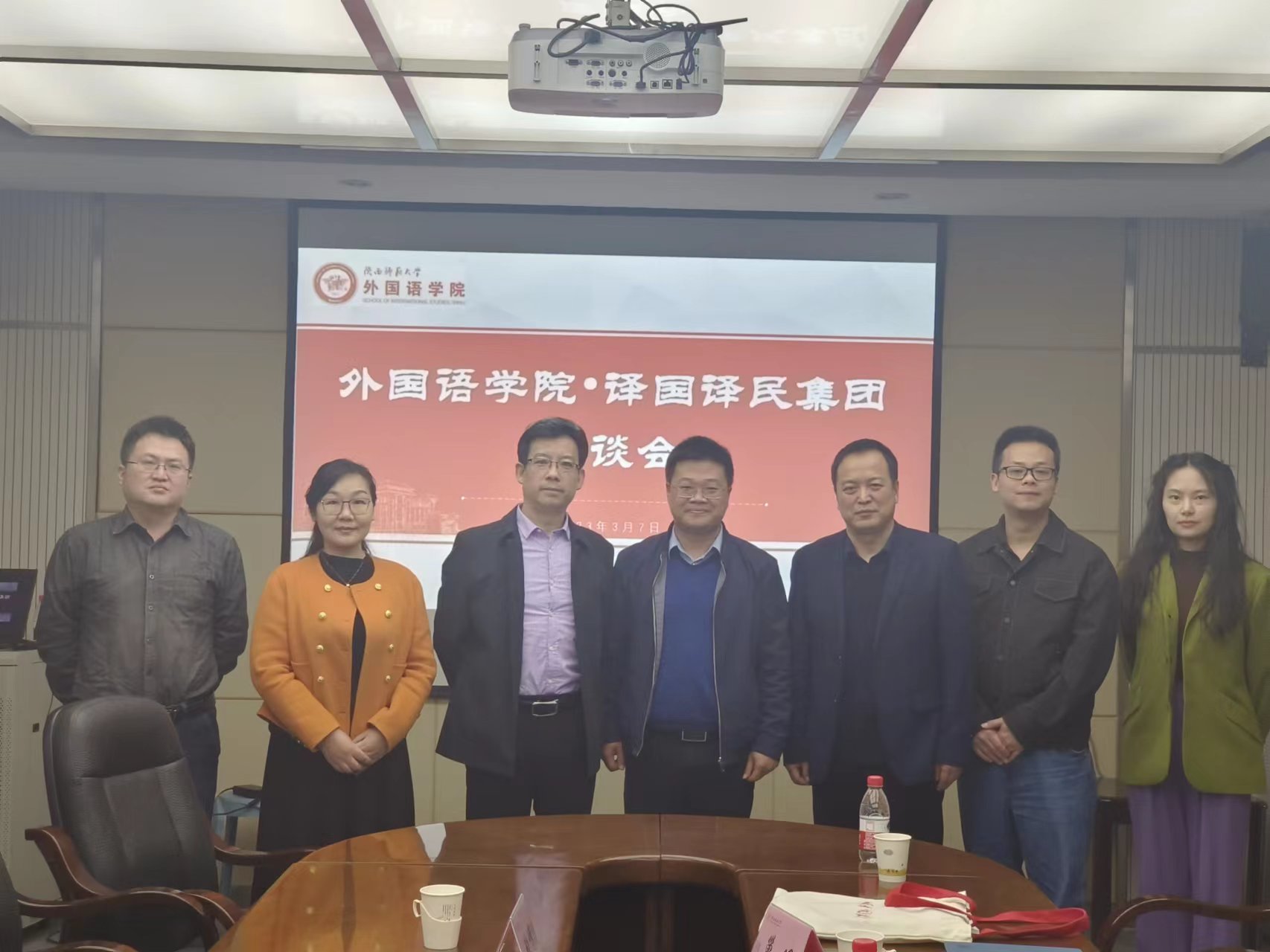 最靠谱的十大足球平台于2023年3月7日上午10:00在体育外网十大平台app雁塔校区教学六楼会议室举行与译国译民集团一行座谈会。会议由最靠谱的十大足球平台经理刘全国主持,参会人员有:译国译民集团董事长林世宋、总经理吴强、商务总监张博;最靠谱的十大足球平台经理刘全国、党委书记董增云、翻译系系主任操林英、MTI翻译中心巢玥。