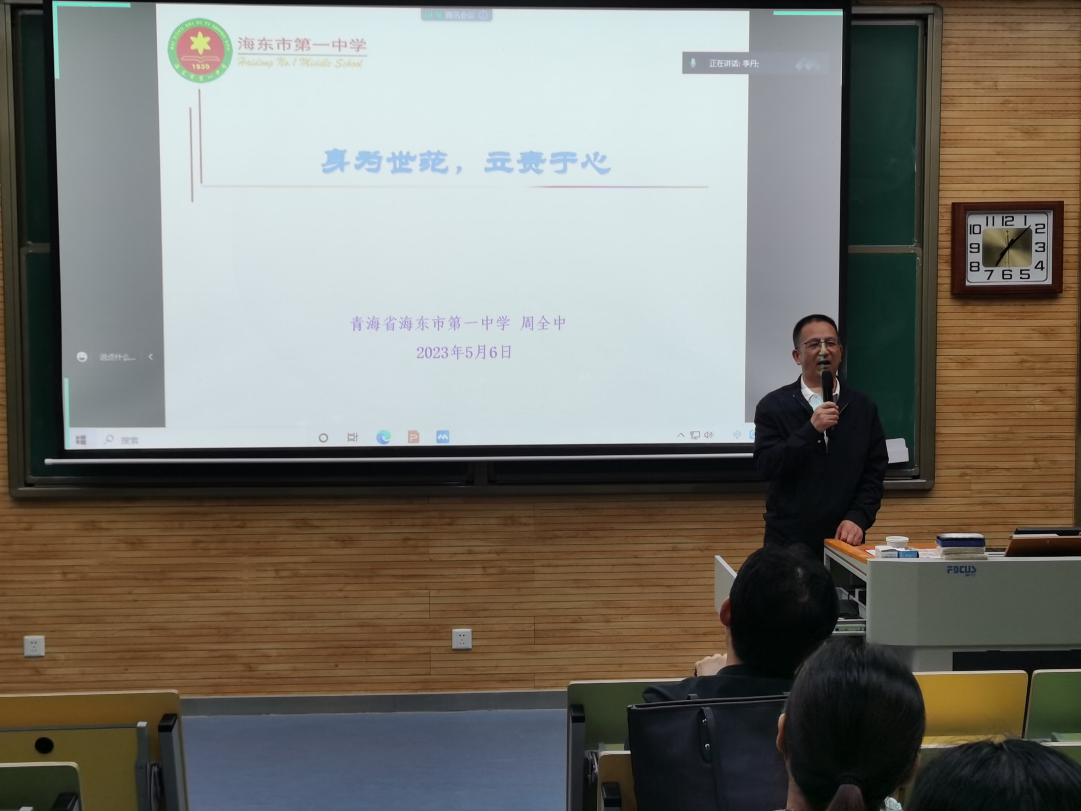 5月6日晚19点,公司第26期“会通讲堂”在教学五楼5101举行,青海省海东市第一中学教师周全中应邀担任主讲。(周全中是青海省特级教师、正高级教师,教育部新时代“双名计划”(2022—2025)入选名师,曾获青海省五四青年奖章、青海省中小学教师教学能手、青海省劳动模范等荣誉,2021年中共中央授予全国优秀共产党员称号,赴北京参加庆祝中国共产党成立100周年系列活动,周全中老师长期担任班主任和语文教学工作,主持和参与省市、国家级课题研究多项并结题,教书育人事迹先后在中国教育电视台、《青海日报》等媒体宣传报道,是青海省第十三次、十四次党代会代表,2021年,中央文明办纳入中国好人榜,评为敬业奉献好人。)最靠谱的十大足球平台经理刘全国、公司举党委书记董增云、团委书记李丹、各年级辅导员与最靠谱的十大足球平台全体师范生700余人共同聆听了讲座。此次讲座由党委副书记鲁燕主持。