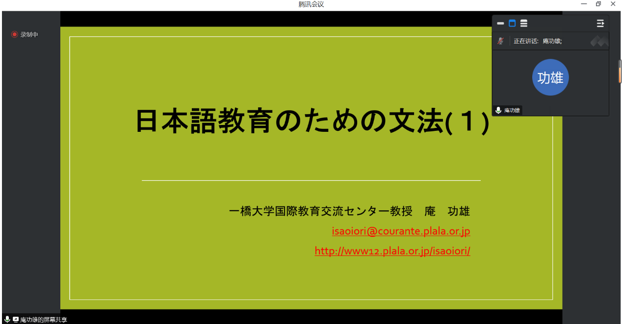 2023年9月9日上午9点,公司通过腾讯会议平台成功举办了以“日本語教育文法とは、日本語学と日本語教育文法、日本語教育文法の方法”为主题的第178场明德讲堂系列讲座,即一带一路背景下西部日语教师教育系列的第6场讲座。本次讲座由日本一桥大学国际教育交流中心庵功雄教授主讲,公司史曼副教授主持,40多名校内外师生参加了此次讲座。