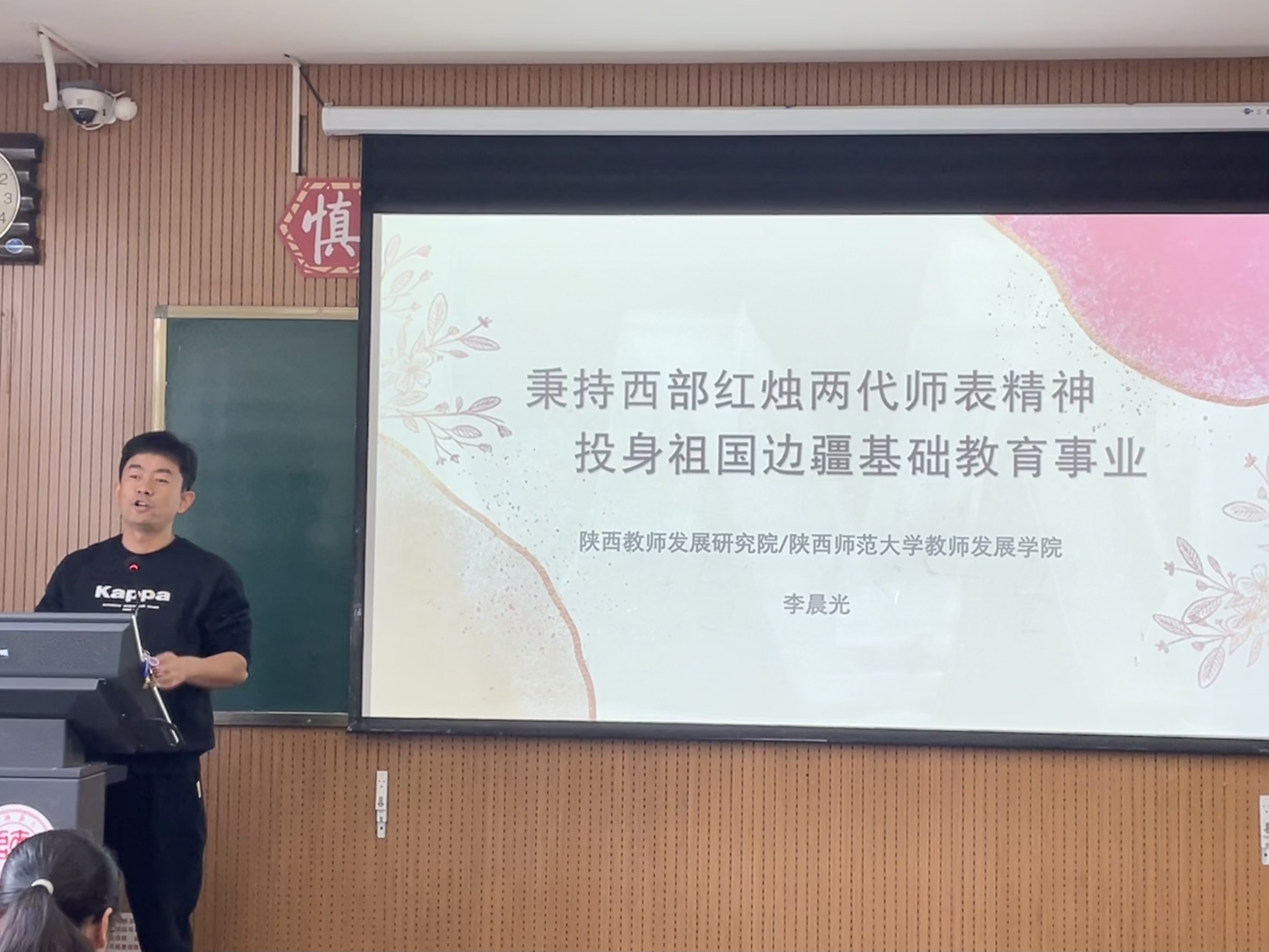 新时代教师要以杰出代表为典型,书写教育担当。李晨光老师讲述了次旺、安倩等多名陕师青年扎根西藏教书育人的先进事迹,揭示边疆基础教育现状与问题,鼓励员工积极投身祖国边疆基础教育事业,为西部教育高质量发展作出贡献。