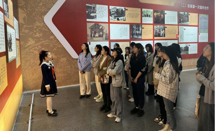 走进展览厅,朝气蓬勃的少年队员们已在各自负责的展厅内做好了准备,依次为研究生党员们声情并茂地讲解宋庆龄先生坚定不移与中国共产党“想在一起、站在一起、干在一起”的光辉事迹。