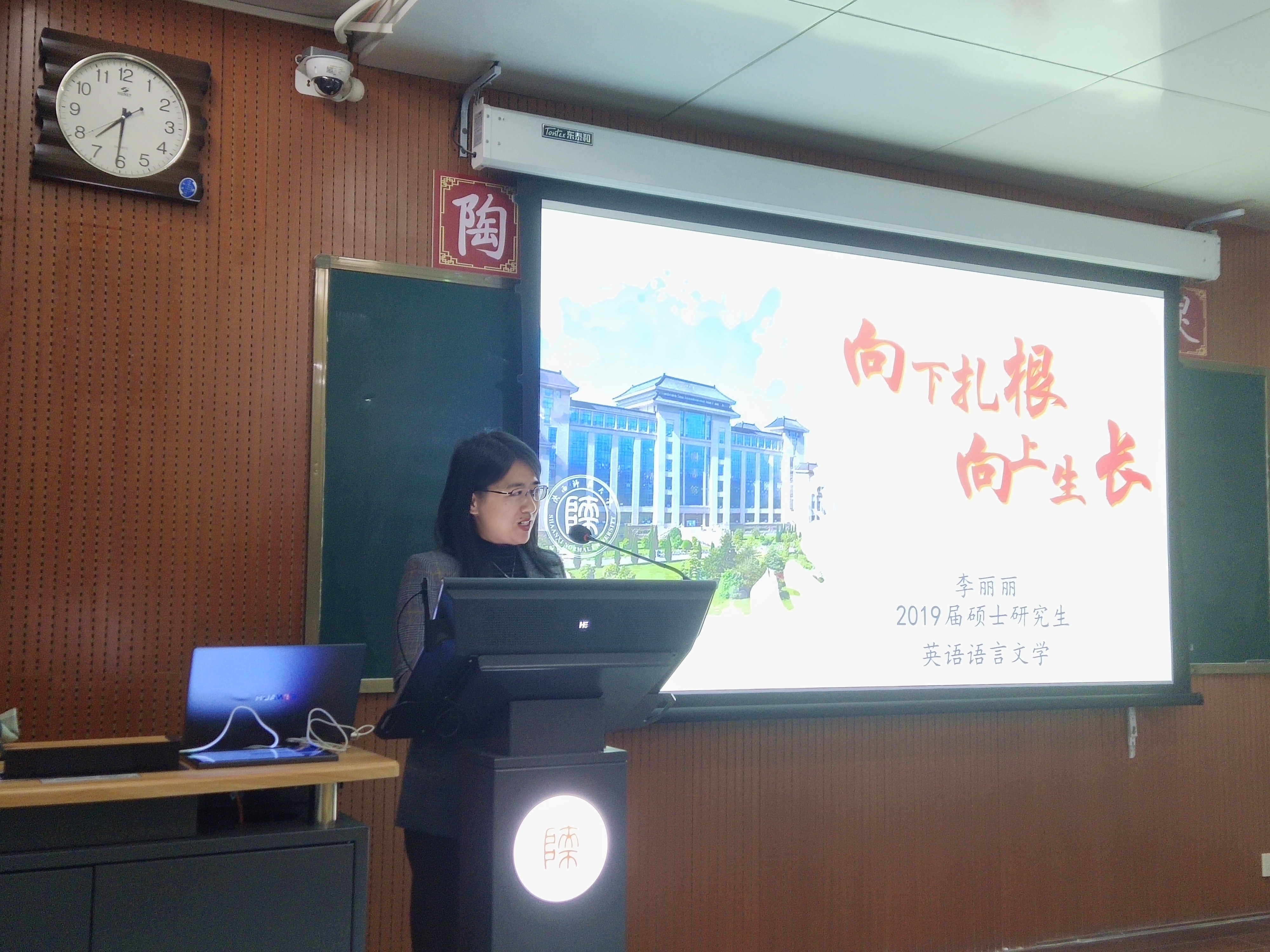 为引导公司员工树立正确的就业观,提升员工的就业能力,最靠谱的十大足球平台于11月9日19:30在雁塔校区教学四楼4201教室举行了2023年“老员工就业能力提升季”系列讲座的第一场报告会。本次讲座由董洁主持,公司院友、西安市凤凰城初级中学英语教师李丽丽受邀作了主题为“向下扎根,向上生长”的讲座,公司2024届毕业研究生参加本次讲座。