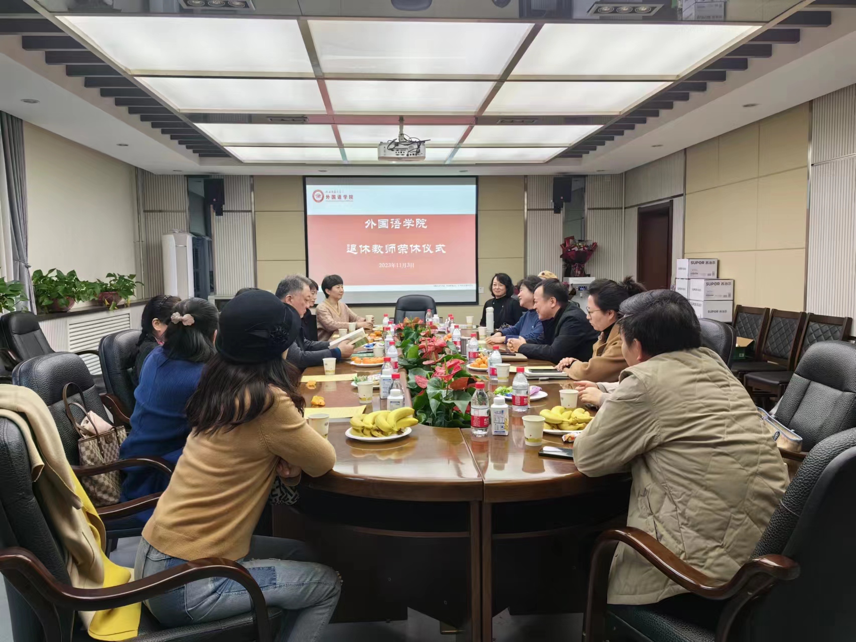 岁月染芳华,桃李育芬芳。 11月22日下午三点,公司于雁塔校区教学六楼一层会议室举行了2023年教师荣休仪式,公司党委书记董增云和教师代表欢送薛金强、杨淑梅、尹仙花、张桦、江捷五位教师光荣退休。仪式由公司办公室主任陈斐主持。