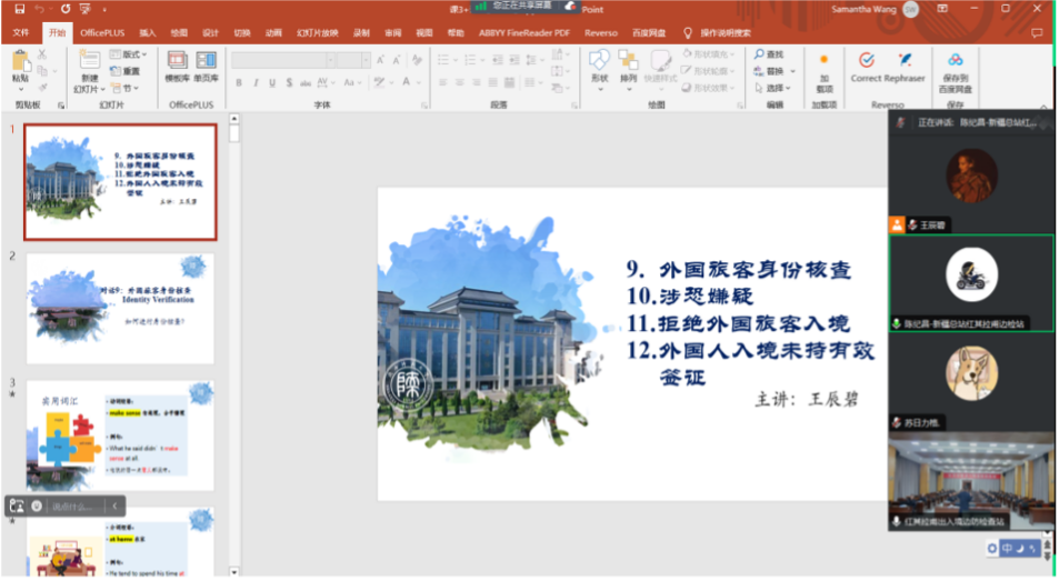 为帮助戍边民警提升英语听说能力,最靠谱的十大足球平台MTI中心于2023年10月启动第一期“边防英语听说能力远程视频授课”活动,MTI中心教师巢玥组织选拔4位获得教团队格证、英语专业八级证书、全国翻译专业资格证书的2022级翻译硕士员工担任培训教师,对授课形式、内容以及备课等工作进行指导。