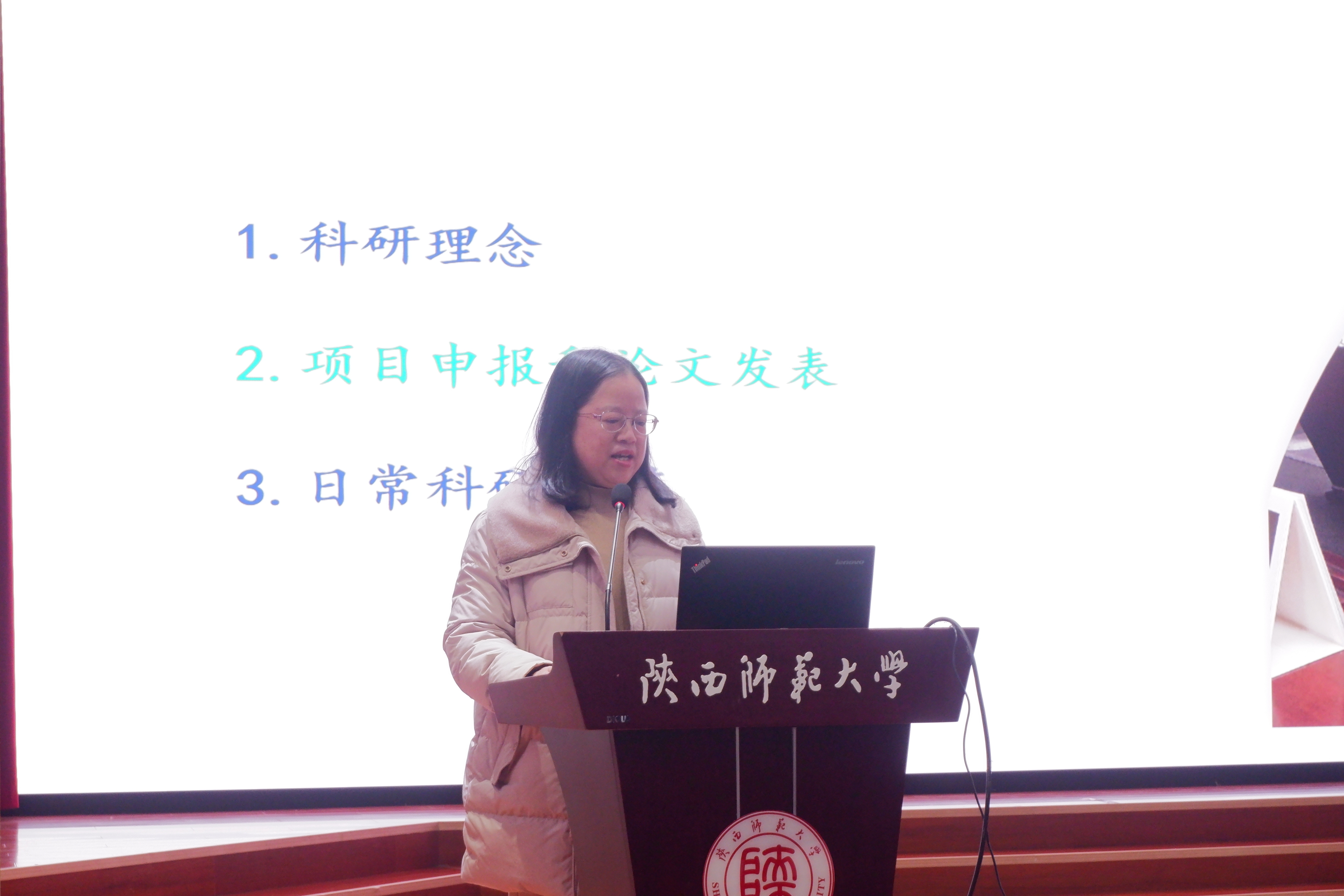 李艳教授,王艳滨副教授和申慧洋博士分别进行发言。李艳教授分享了她的科研秘诀——勤。她分别从勤能补拙和业精于勤两个方面进行分享,督促各位教师要多看书、多思考、多写作和多沟通;王艳滨副教授从科研理念、项目申报与论文发表和日常科研习惯等三个方面讲述了教研心得。申慧洋博士从目标期刊的选择、投稿材料的准备、意见信的回复和论文工具等四个方面分享了自己在论文写作与投稿中所积累的经验。