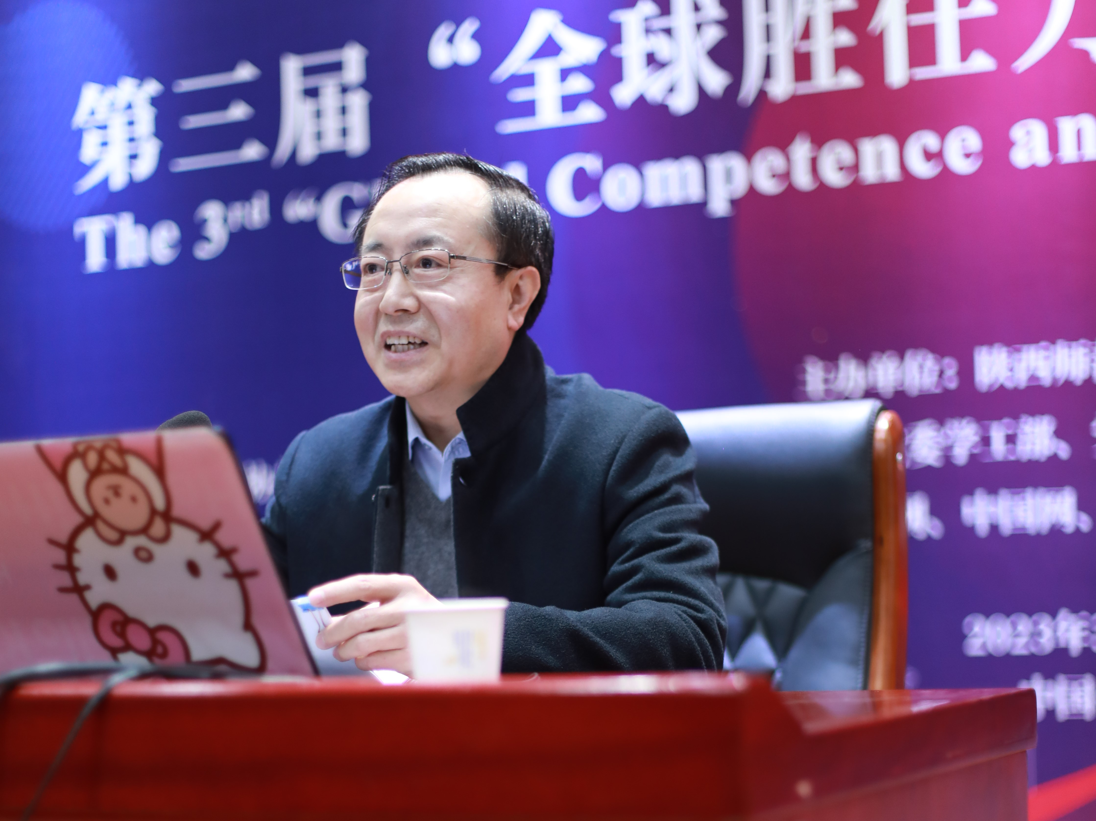 主旨报告阶段,来自不同专业领域的三名专家分别作了主题分享。西安外国语大学副董事长赵国华以“坚定‘四个自信’,助力民族复兴”为题,结合自身在英国大使馆以及丰富的外交和教育外事工作经历,从政治、经济、社会、政府治理与民生、国际关系五个方面介绍了中国之治与西方文化的对比,并对外语青年学子提出了希冀,鼓励大家要树立正确三观,坚定理想信念,把爱国之情、强国之志、报国之行融入民族振兴的伟业中。体育外网十大平台app教育学部教授刘骥以“教育的时代特征与时间张力:全球胜任力的视角”为题,通过剖析当代国际组织对“全球胜任力”的认识和探索,提出“教育如何应对新挑战”已经成为不可回避的时代之问,他强调教育的时代性发展源于教育的时间性智慧积累。秦创原(国际)路演中心董事长张国宁以“全球胜任力与青年韧性”为主题,通过国际社会中一系列生动的事例,说明了AI技术大跃迁背景下韧性培养与青年发展之间的关系,指出韧性是成功之源,生存之本,鼓励当代青年要善于穿透“迷雾”,奔赴繁星。