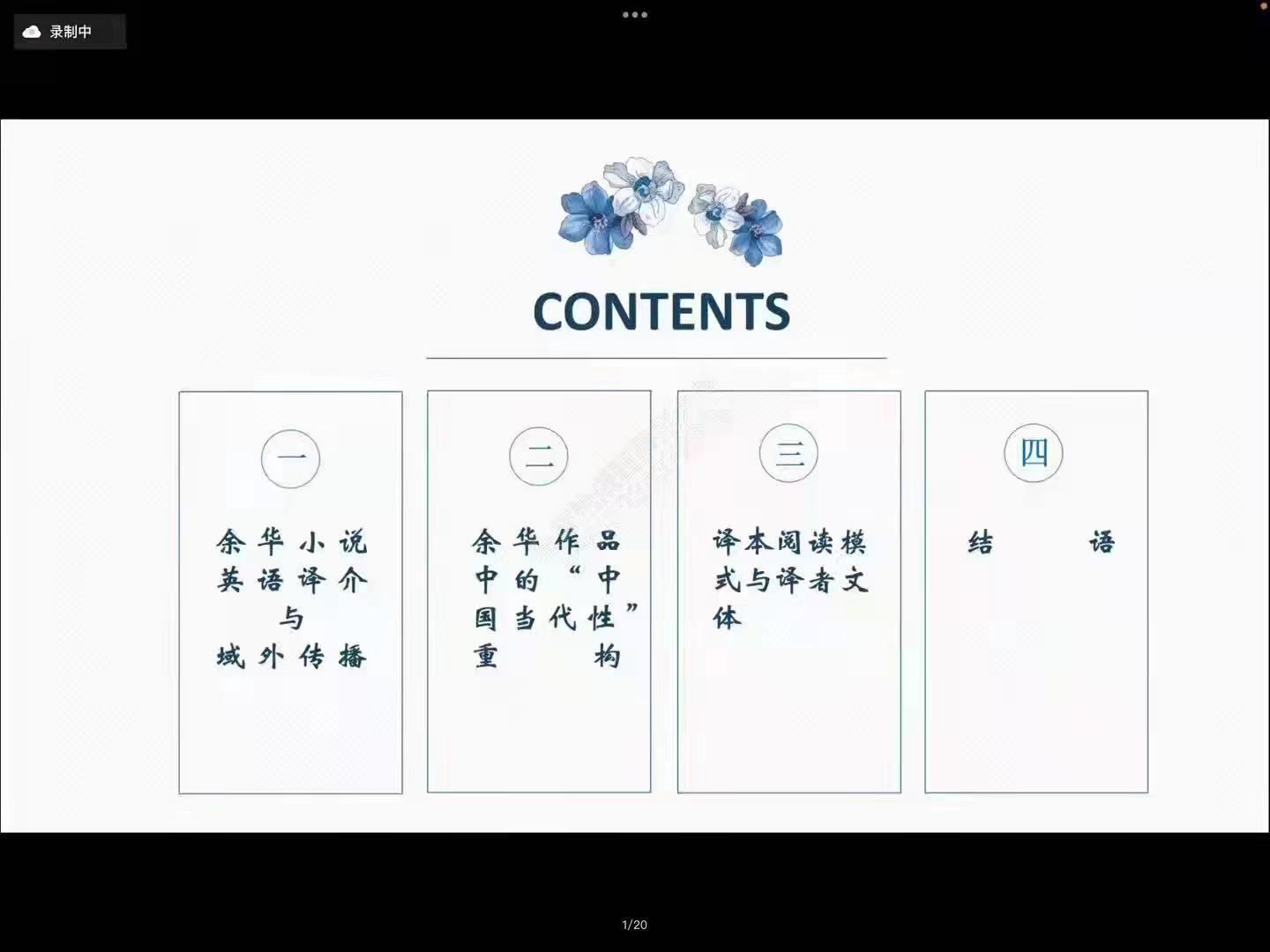 邵璐教授以余华小说英语译介与域外传播情况分析为切入点,重点介绍了余华作品中的“中国当代性”重构以及译本阅读模式与译者问题。她提到,余华作品译入语种丰富、英法译本广受欢迎、国外译介历史久远,对余华作品在海外的译介及接受情况展开研究具有典型意义。邵璐教授指出,“中国当代性”是一个多元概念,代表中国本土的“当代性”在应对世界主义的时候不能被看作是一个整体,而是由多元异质的当代华语聚合而成的一个概念,并以作家莫言和余华的文学作品为例说明中国作家的作品向世界展示了一个当代多元中国。