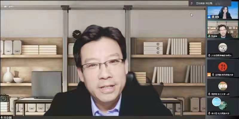 与谈人刘全国教授首先对邵璐教授的学术报告给予高度评价,称其为“一场盛大的学术盛宴”,认为报告内容丰富充实,发人深思,不仅从世界文学、比较文学和翻译学等方面对余华作品的译介传播进行了梳理和归纳,也从语言学、文学研究和文化研究三大范式厘清了翻译学发展的脉络。他认为,翻译作为多元交融的跨学科研究,翻译研究者只有具有宏大的叙事结构和学术视野,才能在翻译学研究领域有所建树。