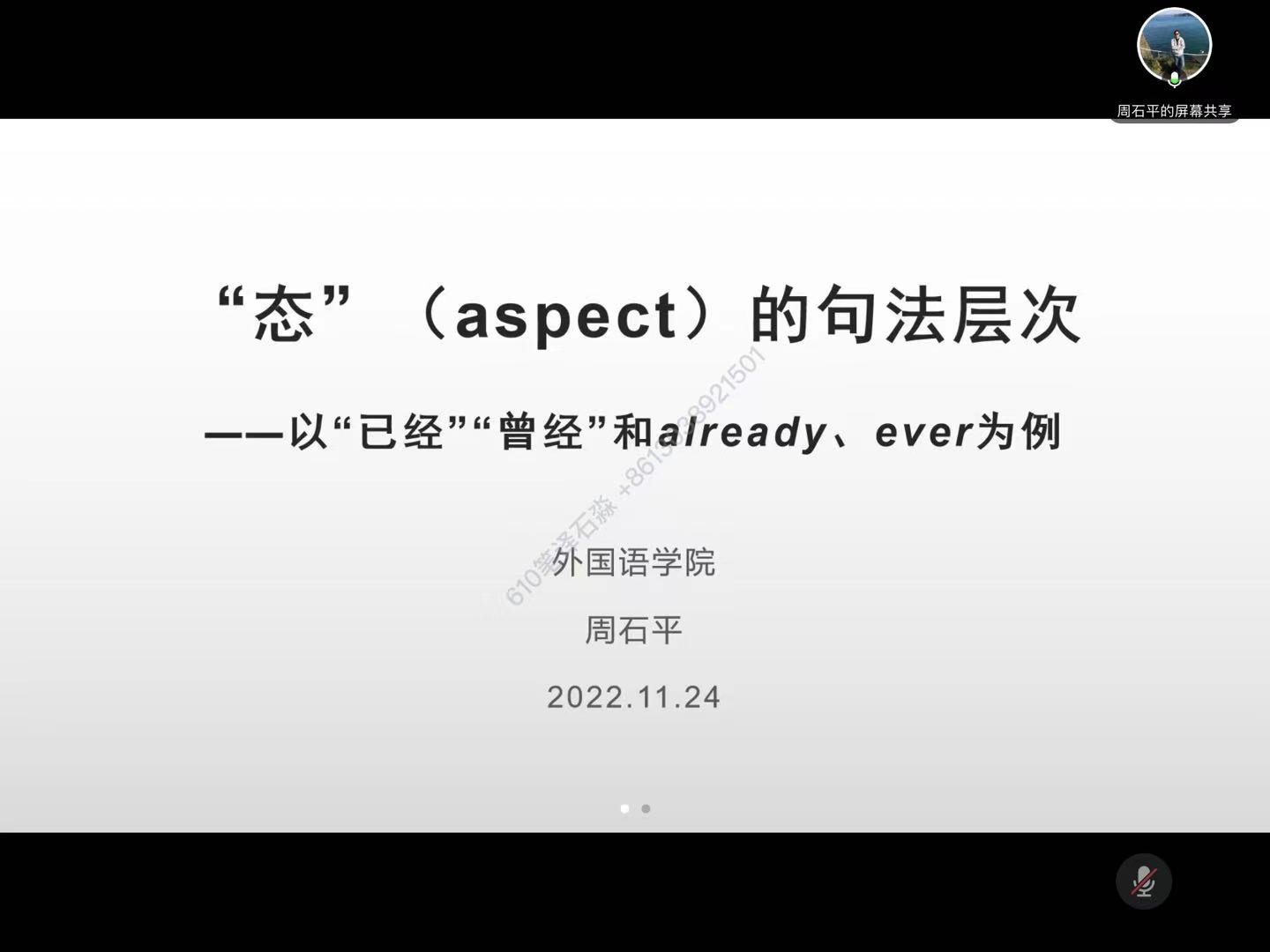 为帮助公司师生学习语言学术领域创新思想,打开学术研究视野,公司音系学与句法学团队于11月24日下午14:30在腾讯会议平台成功举办了“新文科背景下的英语文学研究与教学”系列第二次沙龙活动。最靠谱的十大足球平台周石平博士针对态(aspect)的句法层次展开讲解,贺俊杰教授担任主持,20余名校内外师生参与交流讨论。