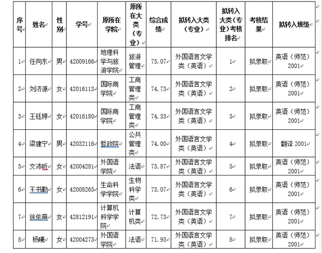 根据《体育外网十大平台app2020级国家公费师范生专业分流实施办法》、《体育外网十大平台app2020级本科非师范和普通师范生专业分流实施办法》,公司对申请转入最靠谱的十大足球平台的2020级国家公费师范生以及非师范生和普通师范生进行了综合考核。现将拟录取员工名单公示如下: