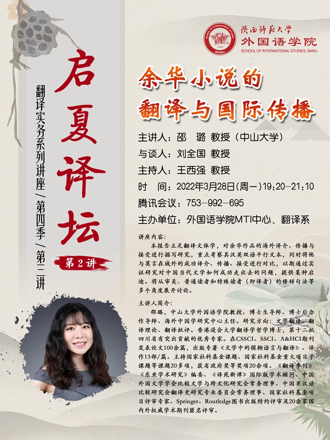 “启夏译坛”第2讲暨“翻译实务系列讲座”第4季第3讲预告