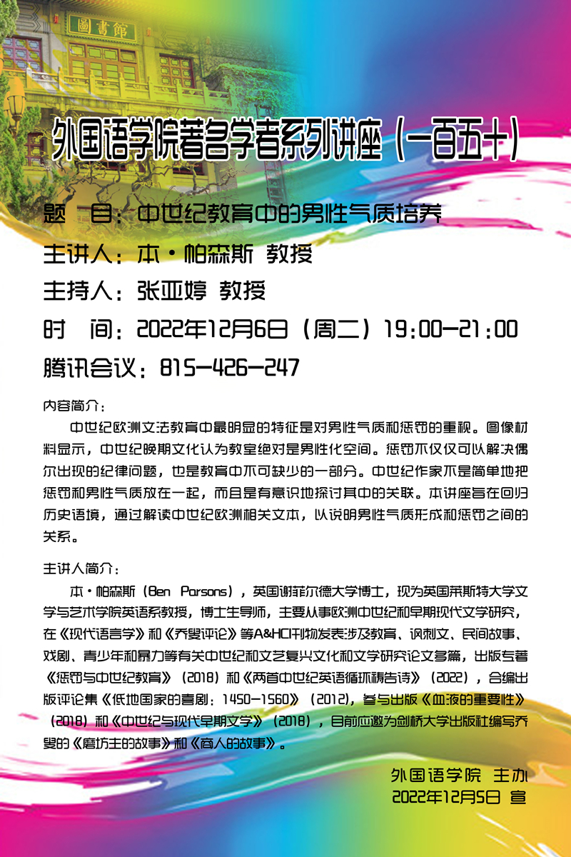 最靠谱的十大足球平台著名学者系列讲座(一百五十)预告
