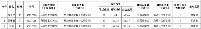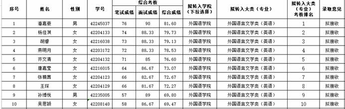 三、外语类专业分流考核通过名单